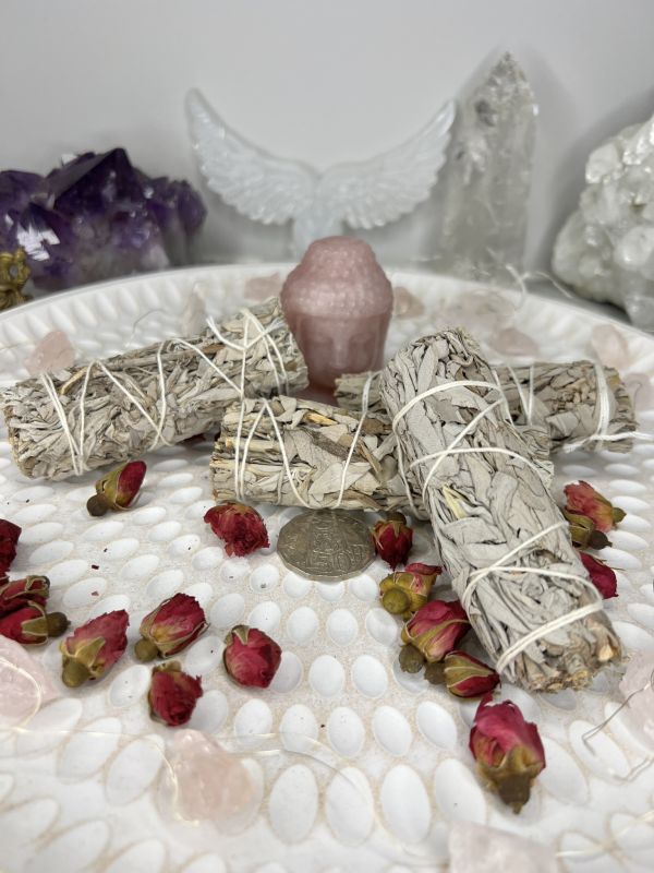 Белый шалфей (Salvia apiana) — это трава, произрастающая в диком виде на юго-западе США и в Мексике. Он часто используется в ритуалах и церемониях в рамках местной культуры этих регионов, где считается священным и целебным. Белый шалфей часто поджаривают как «палочку-мазок», то есть поджигают и используют для очистки воздуха и изменения энергии пространства.